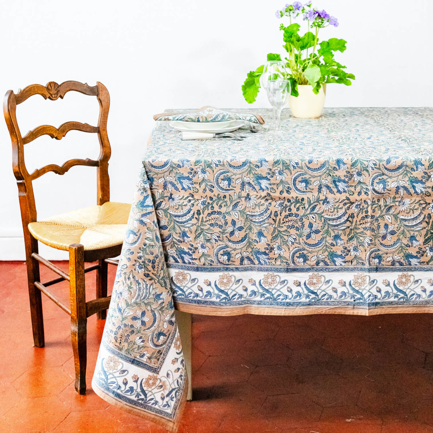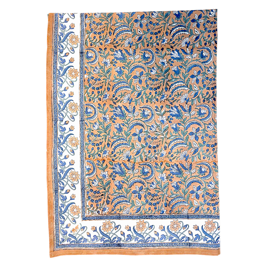 Cette nappe en coton block print apporte charme et couleurs à votre table. Imprimée à la main selon un savoir-faire ancestral, elle est parfaite pour sublimer vos repas du quotidien comme vos grandes occasions.